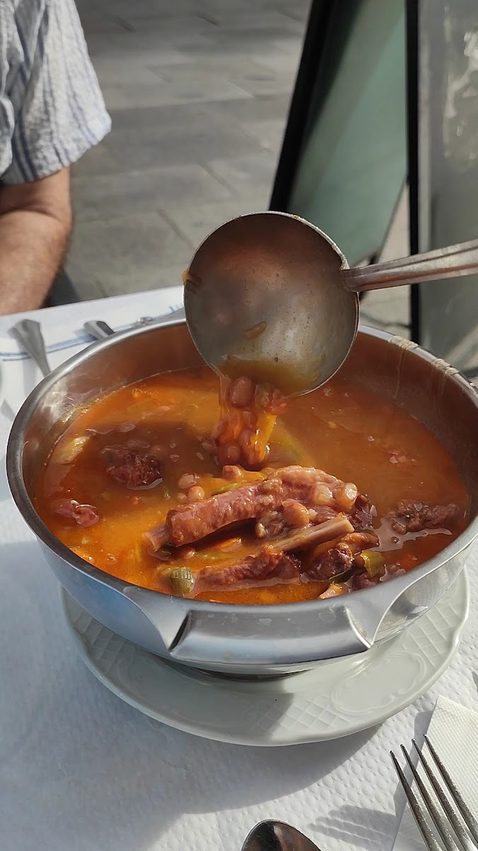 My friend and I arrived in Gurnika and were ravenous! We were a little early for food as the locals tend to eat after 8pm (at the earliest) but as we had been hiking on the Camino all day we were desperate for food. This place was quieter than other places so we were apprehensive but the menu del dia was a great price (12€) with good choices. I have to say I was pleasantly surprised at the quality of the food here. My salad first course was huge and so fresh and my second course of fish was again fresh and meaty. I would definitely recommend this restaurant if staying in Gurnika and need a filling meal at a cheap price. Great place